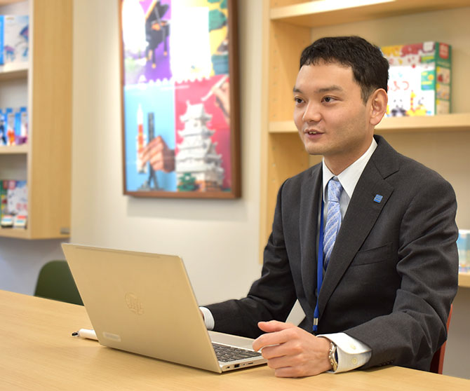 私は営業としてGMS(総合スーパー)を担当し、おもちゃメーカーと小売店をつなぐ役割を担っています。新商品の紹介から売場の陳列提案、導入までを一貫して行うことが主な業務です。
